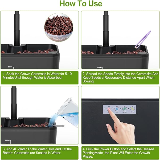 - 【Adaptive Grow Lights】The hydroponic growing system includes adjustable-height LED lamps that extend up to 13.9 inches, offering 20% more coverage to support plants through every stage of growth. Whether you’re growing herbs, veggies, or flowers, the generous water tank and intelligent lighting work together to create ideal growing conditions—all in a compact indoor setup.