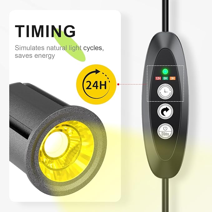 - Automatic Timer: Plant lamp features auto on/off timer with 3 cycle modes (3H/6H/12H), turning on and off daily based on your settings. Allows you to care for plants effortlessly, even when you're at work or on vacation, without manual intervention