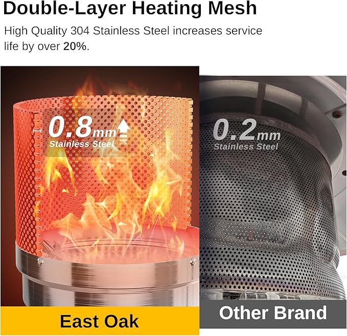 - ๐ ๐ผ๐ฟ๐ฒ ๐๐๐ฟ๐ฎ๐ฏ๐น๐ฒ ๐๐ผ๐๐ฏ๐น๐ฒ-๐๐ฎ๐๐ฒ๐ฟ ๐๐ฒ๐ฎ๐๐ถ๐ป๐ด ๐ ๐ฒ๐๐ต: High-quality 304 stainless steel is engineered into our double-cover heating mesh design. Compared with a traditional single-layer burning mesh heater, the EAST OAK Outdoor Heater is more powerful, durable, and safer. All these improvements deliver a 20% longer product life