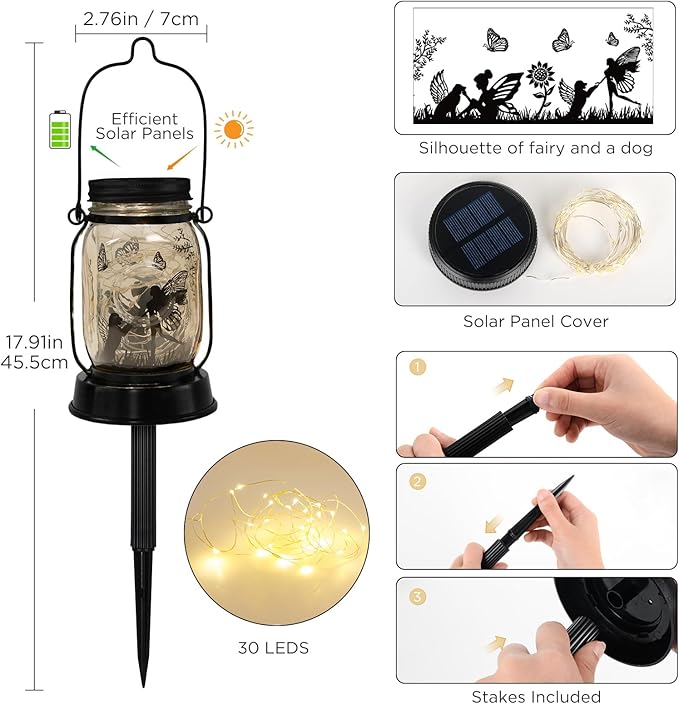 - 3-IN-1 SOLAR LANTERN FOR ANY SPACE: This enchanting solar garden lantern offers versatility with lawn, tabletop, and hanging mount options! Effortlessly hang it wherever you please. Looking to add a touch of whimsy to your life? Suspend this lantern within your home, transforming it into a picturesque scene that brings good fortune. It's ideally suited for gardens, yards, balconies, windowsills, and corridors, effortlessly enhancing bedrooms, living spaces, windows, and gardens alike.