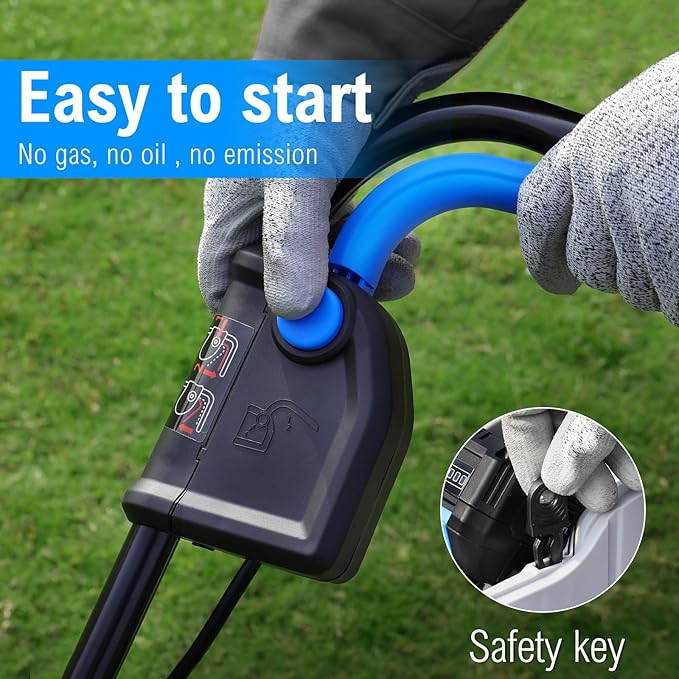 - 【Lightweight and Maneuverable】: Weighing only 23.7 pounds, the electreic cordless lawn mower is easy to maneuver and transport. Lightweight and intuitively designed, it operates effortlessly—requiring minimal strength to maneuver. Anyone can master it, regardless of age or physical ability.