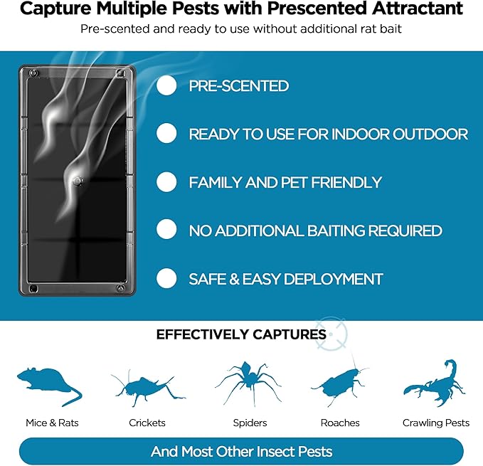 - Versatile Use: Our glue traps can be used in residential, commercial or industrial buildings, or anywhere rodenticides or snap traps are undesirable or prohibited. Ideal for catching not just rodents but also other pests and insects