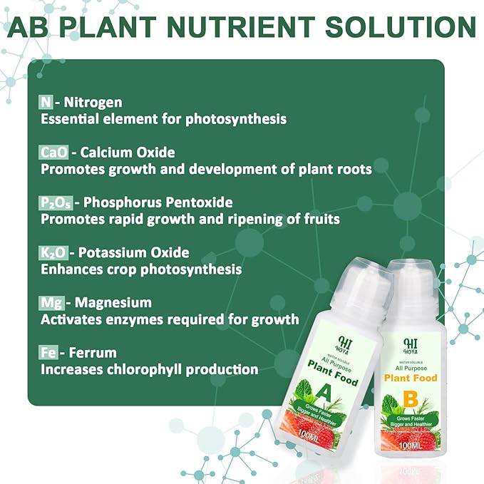 - Nutrient Rich Plant Food: A&B plant food one bottle makes 100ml of odorless fertilizer that feeds instantly. Grow stronger and rapid rooter. For all types of feeding methods: soil drench, foliar feed and hydroponic