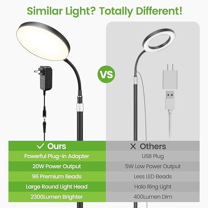 - 20W Power Output: Different from normal cheap USB plugs floor-standing plant lights, our grow lights are equipped with high-quality bright LED lamp beads and adopt a professional plug-in adapter, with more stable current output, providing a stronger and wider range of light, accelerating photosynthesis, and effectively promoting the growth of indoor plants
