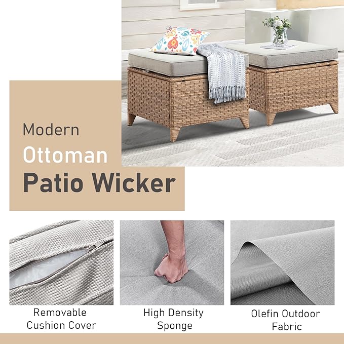 - 4" Soft Thickness Cushions: Patio furniture cushion is filled with high-density sponge and the cover is made of UV Resistant outdoor olefin fabric, which provides better comfortable seating experience. Removable zipper design, easy to replace and clean.