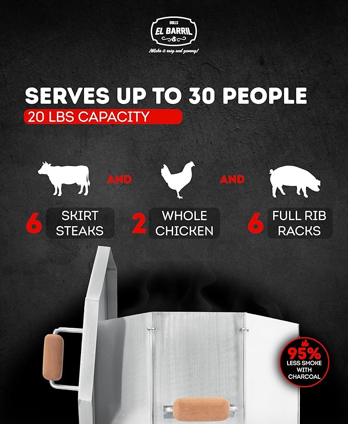 EL BARRIL 20lbs Stainless Steel Foldable Charcoal Smoker & Grill Barrel – Portable Outdoor Smokers with Grilling Accessories & Carry Bag