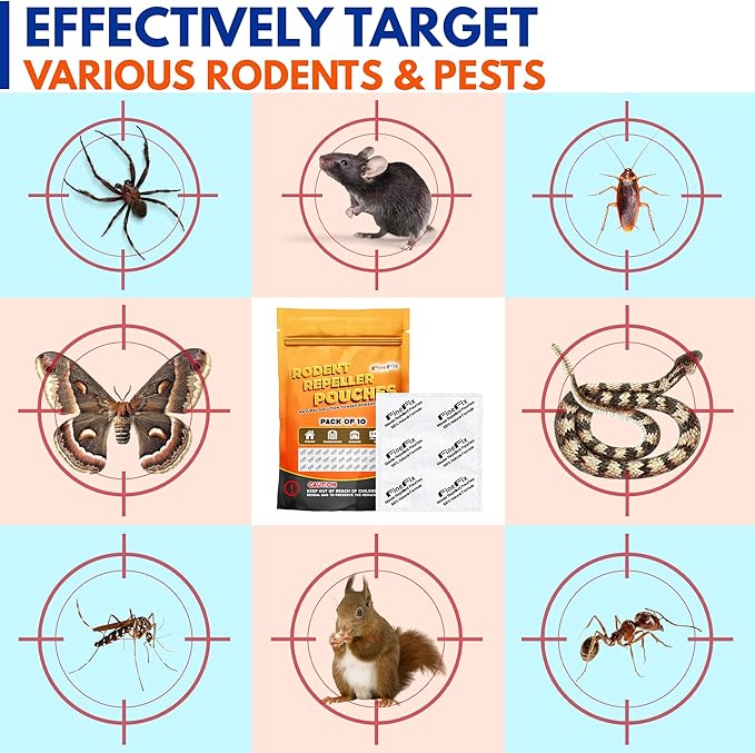 - NATURAL & EFFECTIVE FORMULA: Looking for rodent-repelling pouches? Look no further; here comes rodent repellent pouches, our natural plant based formula keeps rodents away efficiently without any harm; very safe to use around pets, humans, and plants best mouse repellent pouches.