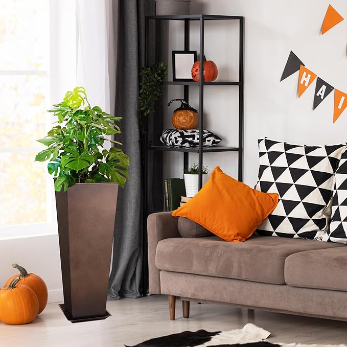 KOL 28''H. Tall Metal Planter with Insert, Set of 2, Galvanized Steel Planter Pots for Indoor & Outdoor Use, Decorative Flower Plant Pots for Front Porch, Patio, Deck - Rust Color