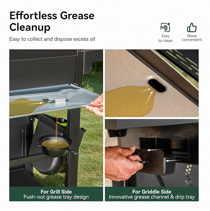 - GRILL AND GRIDDLE COMBO: If you are looking for a better cooking experience, the Propane 5-Burner Gas Grill and Griddle Combo is a convenient and versatile option for outdoor cooking enthusiasts, offering the benefits of both grilling and griddling in one unit. Its sturdy construction and thoughtful features make it a practical choice for backyard barbecues, camping trips, tailgating, and other outdoor events