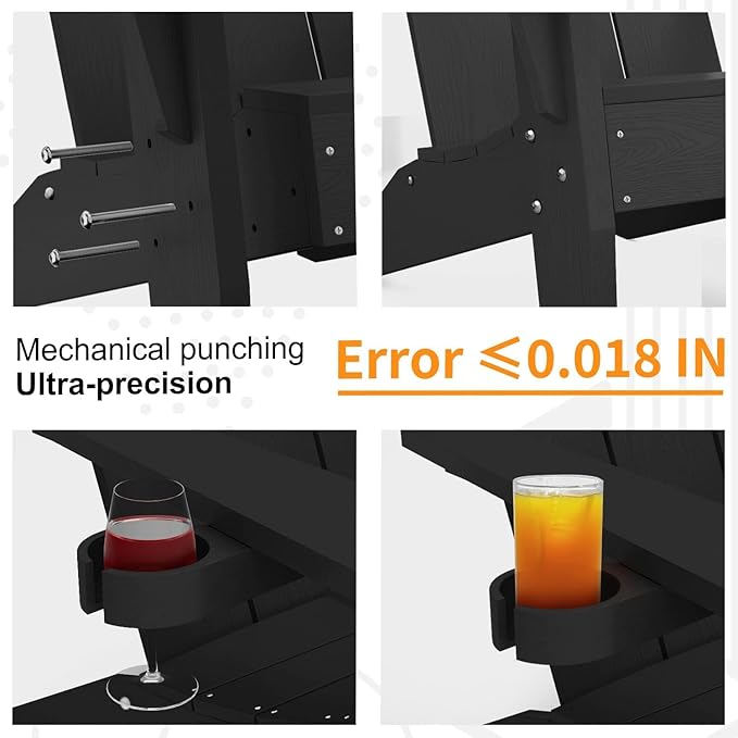- Partial PRE-Installed, Quick Assemble : Sturdy & weatherproof Adirondack chair is easy to put together since it’s pre-assembled into 7 main parts that saves a lot of installation time, no need to start from scratch. Rustic chic charm chair can be placed indoor/outdoor, or for resorts, paired with side table, easy care & lasting beauty