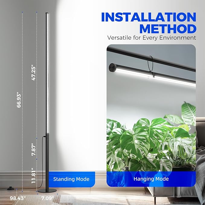 - Adjustable Height for Flexible Lighting : Experience the versatility of our upgraded vertical grow light. With an adjustable height range of 4ft-5.6ft, it caters to tall plants and large plant shelves, ensuring optimal illumination