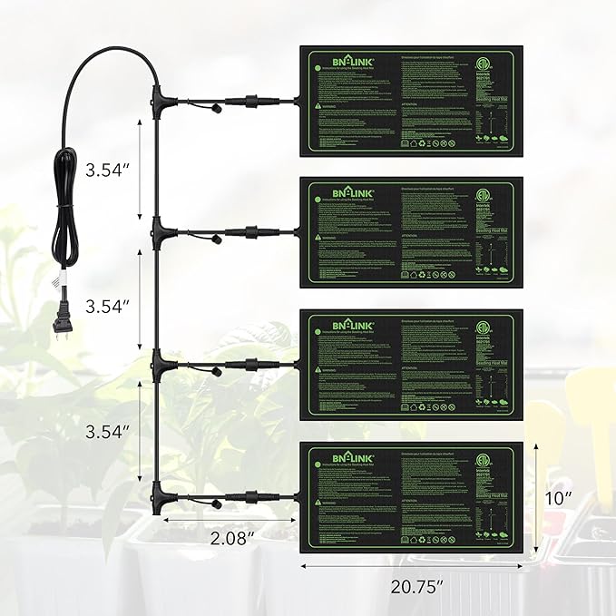 BN-LINK Seedling Heat Mat 10" x 20.75" 4 Pack Daisy Chainable Warm Hydroponic Heating Pad Waterproof for Seed Starting Germination, Indoor Gardening, Greenhouse