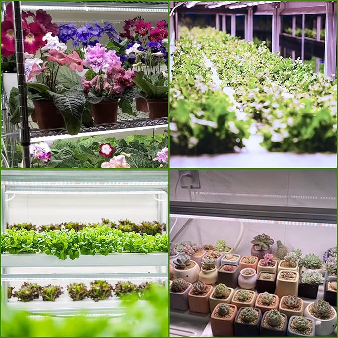 - EASY INSTALLATION: Light kit including tapes, clips and cable ties, you could install the lights by yourself in minutes. Could connect up to 8 tube lights together with seamless connectors or connector cords by end-to-end design. The hanging growing lights have ON/OFF switch,can be Plug and Play. saving your installation cost and time.
