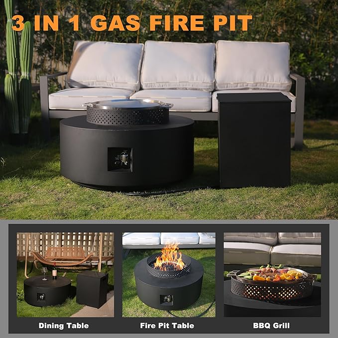 - Outdoor Gift for Any Occasion: This 32" propane fire pit table is a versatile 3-in-1 design—fire pit, coffee table, and BBQ grill. Perfect as a housewarming gift to create a cozy outdoor space, or a holiday surprise for parents and grandparents to enjoy warmth and family cookouts. As a wedding or anniversary gift, it adds romantic ambiance and practical function for gatherings. Also ideal for retirements and festive celebrations, making every outdoor moment memorable