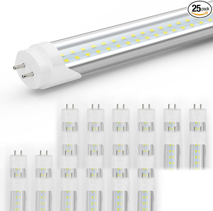 48 Inch LED Bulbs (25 Pack), T8 T10 T12 65W Equivalent Fluorescent Replacement, 24W 3120Lm, 6500K Cool White, Type A+B 4 Foot Tube Light for Office Shop Light, Remove Ballast or Plug & Play