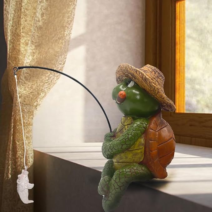 - Weatherproof and Durable: Made from high-quality resin, this weatherproof tortoise fishing statue is built to withstand wind, rain, sun, and snow, ensuring long-lasting beauty for all seasons in your garden, fish pond, or outdoor spaces.