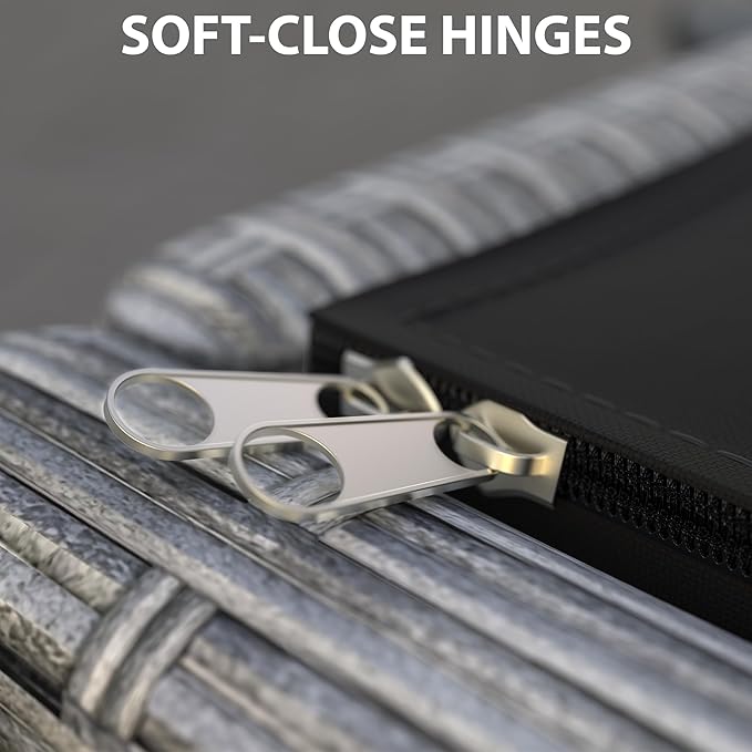 - Secure and Incident-free: Equipped with soft-close hinges and a hydraulic air rod design, the GarveeHome 150 Gallon Large Deck Box Bench ensures the lid closes gently, preventing accidental hand injuries. Ideal for safe and convenient outdoor storage.