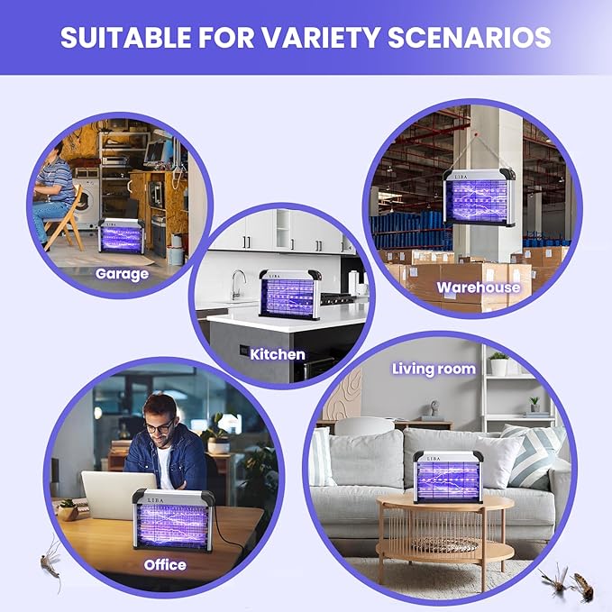 LiBa LED Indoor Bug Zapper, Electric Mosquito Killer Fly Zapper with Dual UV Wavelength Attraction, High Voltage Fly Trap Mosquito Trap Over 10-Year Lifespan LED Bulbs Light, Safe for Kids/Pets