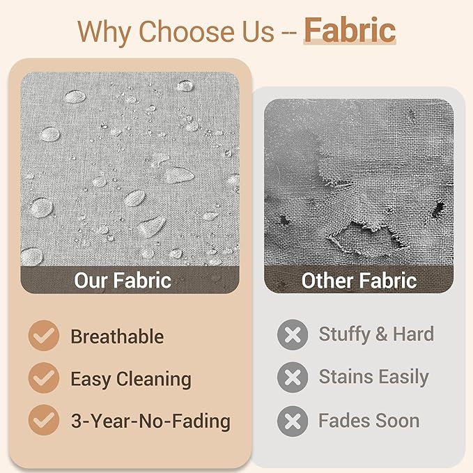 - Texture Woven Fabric: Selected yarn dyed woven fabric, the yarns are dyed and treated before woven into fabric for out door fading resistant and water repellent. Looks and touches with high-end woven texture. No more worry about getting cheaply made thin print fabric.Daily use 3 years no fading. Detachable & washable
