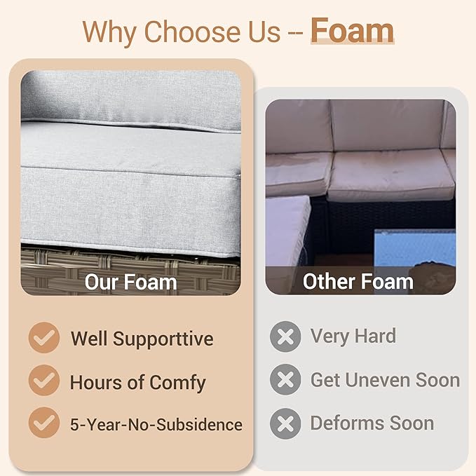 - All Weather & Durable: Selected anti-ageing treated thicken PE wicker rattan for UV resistant, wear resistant and all weatherproof. 3D strengthen and widen design for extended service life,twice service life as others