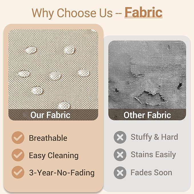 - Texture Woven Fabric: Selected yarn dyed woven fabric, the yarns are dyed and treated before woven into fabric for out door fading resistant and water repellent. Looks and touches with high-end woven texture. No more worry about getting cheaply made thin print fabric.Daily use 3 years no fading. Detachable & washable