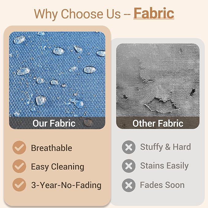 - Texture Woven Fabric: Selected yarn dyed woven fabric, the yarns are dyed and treated before woven into fabric for out door fading resistant and water repellent. Looks and touches with high-end woven texture. No more worry about getting cheaply made thin print fabric.Daily use 3 years no fading. Detachable & washable