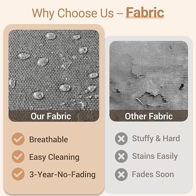 - Texture Woven Fabric: Selected yarn dyed woven fabric, the yarns are dyed and treated before woven into fabric for out door fading resistant and water repellent. Looks and touches with high-end woven texture. No more worry about getting cheaply made thin print fabric.Daily use 3 years no fading. Detachable & washable