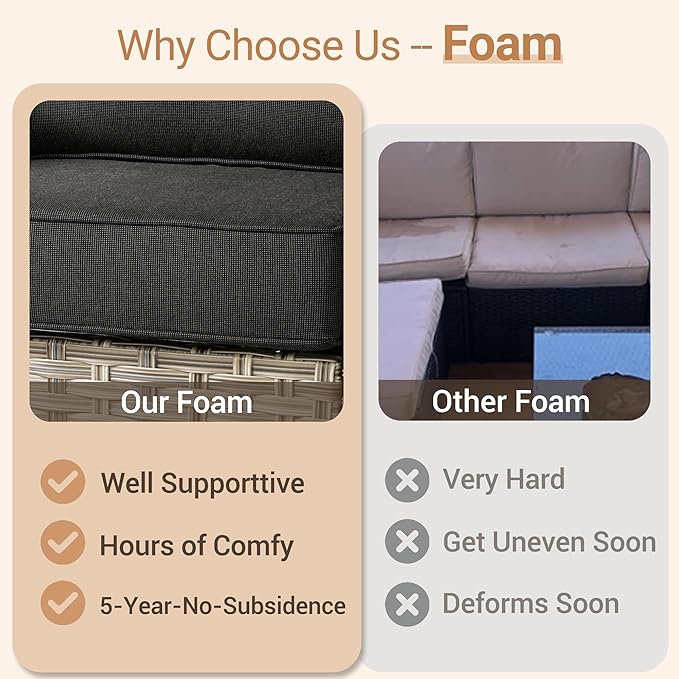 - All Weather & Durable: Selected anti-ageing treated thicken PE wicker rattan for UV resistant, wear resistant and all weatherproof. 3D strengthen and widen design for extended service life,twice service life as others