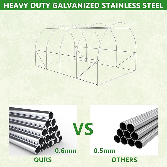 - 【Sturdy Workmanship】This greenhouse is built to last with a heavy-duty galvanized steel frame and durable PE covering. Designed to withstand wind, water, snow, and UV rays, it creates a safe haven for your plants. This portable greenhouse features temperature insulation and reinforced seam edges to ensure that plants continue to grow healthily in a stable environment regardless of weather conditions.