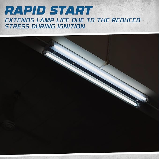 - Rapid Start Technology: Instantly ignites lamps with a 120V input, delivering quick and reliable lighting solutions to enhance your space with minimal wait time.