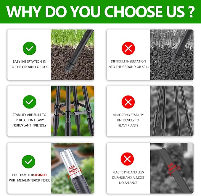 - Easy to Assemble: With a height of 47 inches (4 ft), this plant trellis does not require screws or any tools, the upgraded interface design makes the poles, connecting tubes, and cross arms all fit together easily, and you can place the cross arms at any height you want to support the fruit