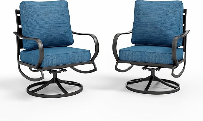 Sophia & William 2 Pieces Patio Furniture Sets Metal Sofa Chairs Patio Cushion Armchairs Swivel Sofa Chairs with Removable Cover for Garden Backyard Poolside Peacock Blue