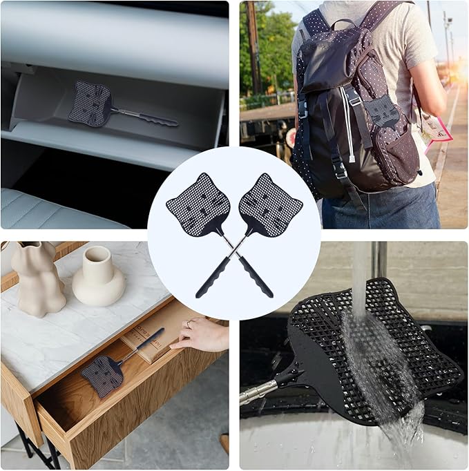 - Easy Storage: Thanks to the telescopic handle, the heavy duty fly swatter can be retracted to 12 inches in length, making it easy to store in small spaces or take with you on the go. Whether you're heading to a picnic, a camping trip, or simply want to keep a swatter in your car.
