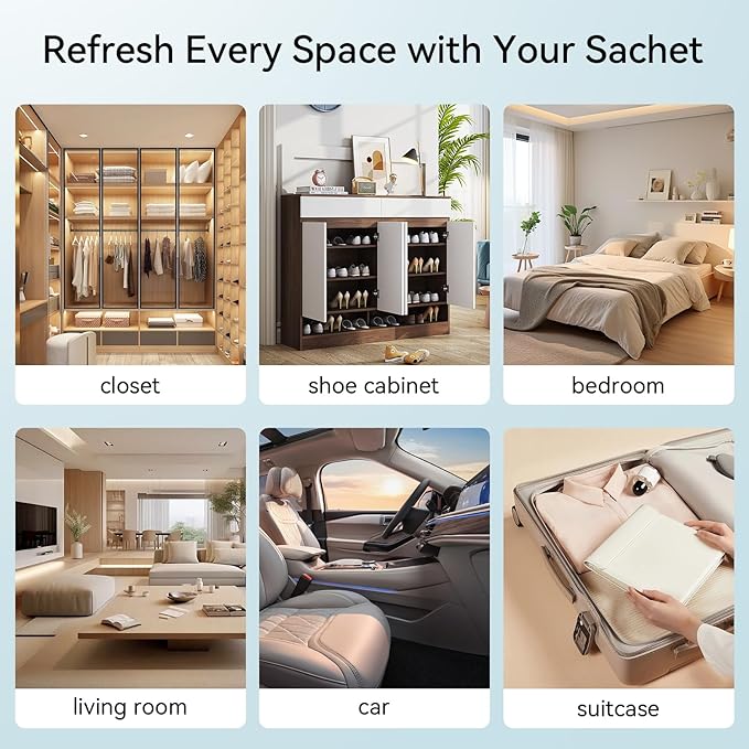 - Keep Your Surroundings Fresh: Use our scented sachets bag to freshen up clothes, linens, car interiors, pet areas, and more. They effectively eliminate unpleasant odors and leave behind a pleasant floral scent, perfect for creating a cozy, refreshing atmosphere