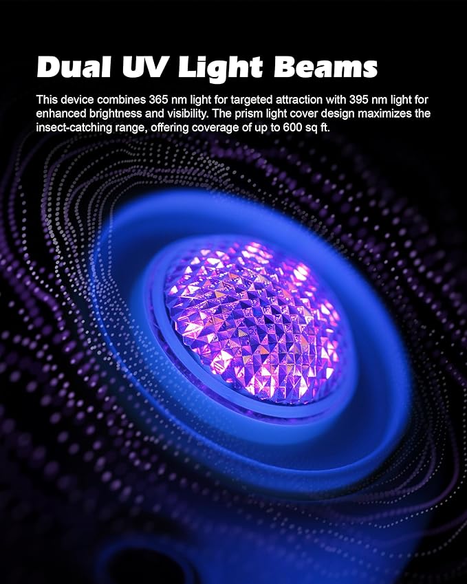 - Adhesive Trapping System: Equipped with an adhesive trapping mechanism, this UV Light fly trap ensures that once insects are attracted by the light, they are securely trapped and unable to escape—no zapping, providing a safe, quite, and effective solution for insect trapping.