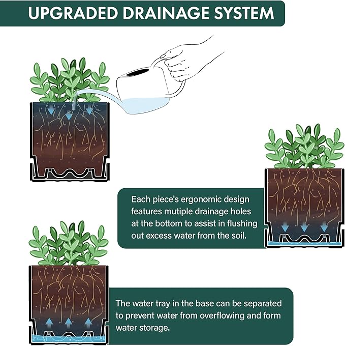 - Bottom Watering Catch Tray Design: Features a deep saucer and pot with a drainage holes, allowing excess water to drain and preventing overwatering. Keeps plants thoroughly hydrated for healthy growth via bottom watering.