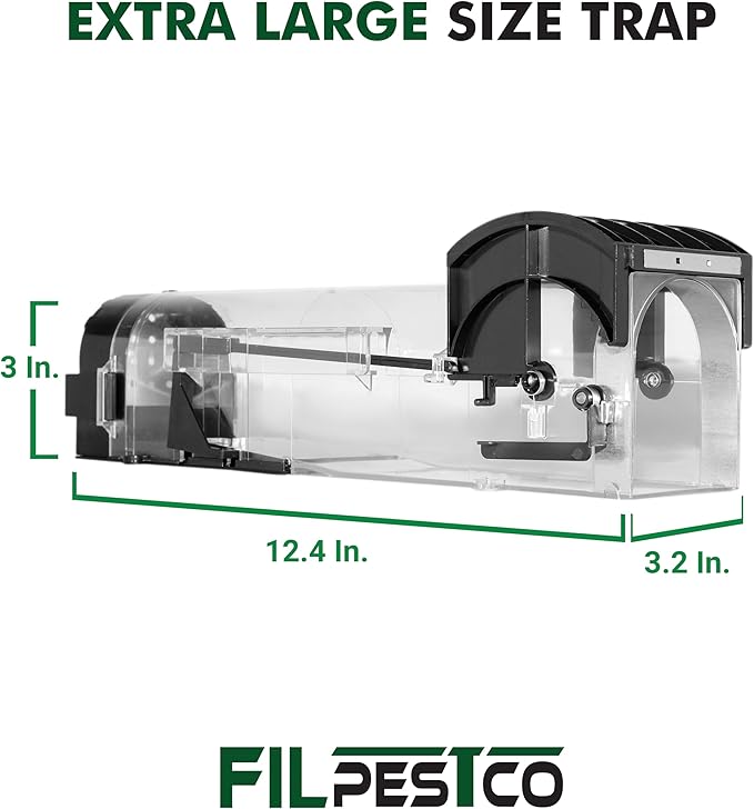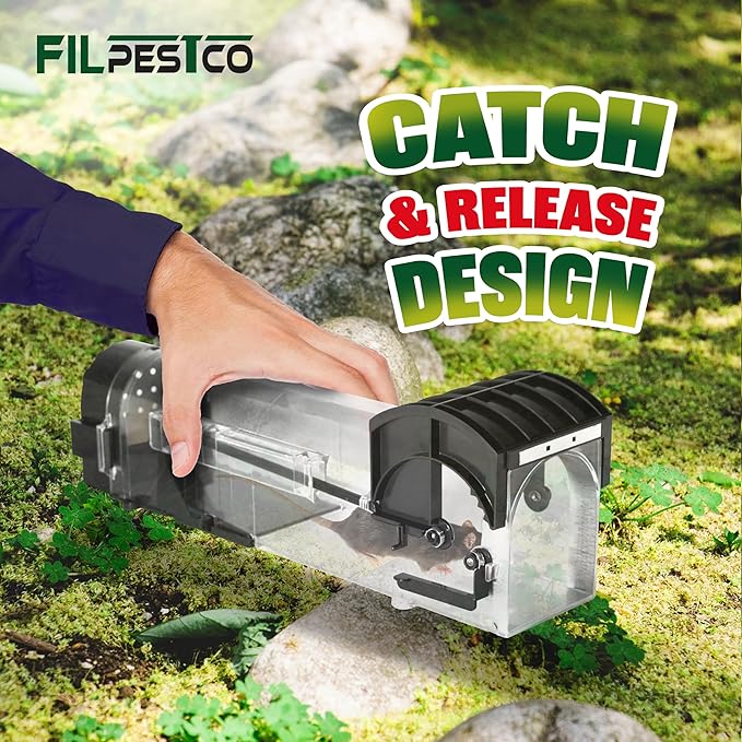 - Humane Catch and Release System - Our trap is designed for the most humane way of rodent trapping. Consist of multiple air vent to ensure rodent safety while waiting to be released in the wild. Measures 12.5 inches in length, our trap is designed to effectively catch even a medium size rats.