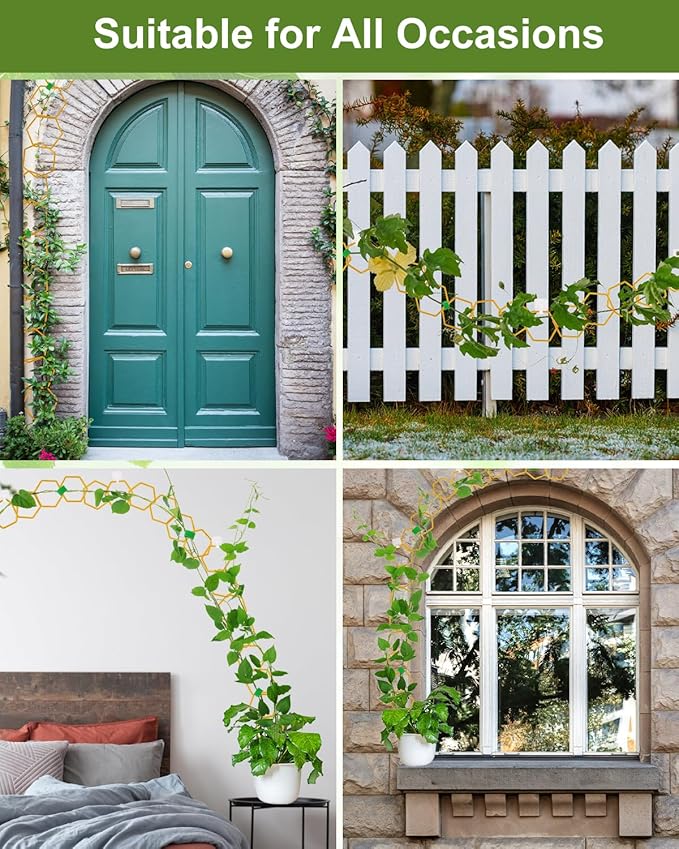 - 【Multi-functional Decorative Design】 Wall trellis adopts a unique hexagonal ring design-modern simplicity, which can provide new ideas for personalized growth of a variety of climbing plants on the wall, potted plants, hanging baskets, etc, and add a unique atmosphere to the home or garden