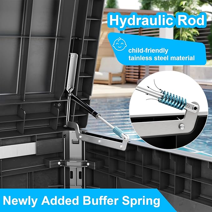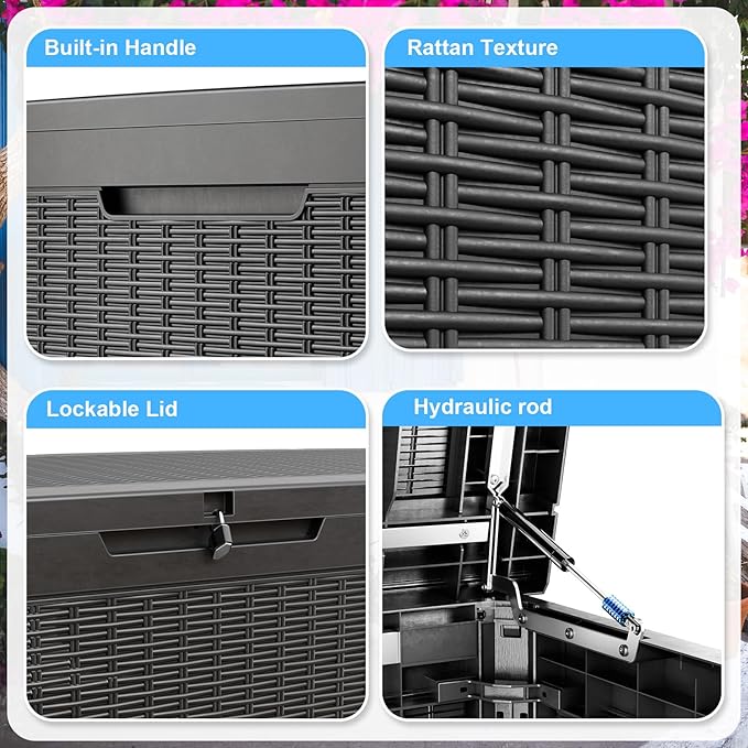 - EASY TO USE: The deck storage box is designed for convenience with built-in handles on both sides, allowing easy lifting and movement. Plus, for added security, you can install a password lock/small lock (not included) on the top cover