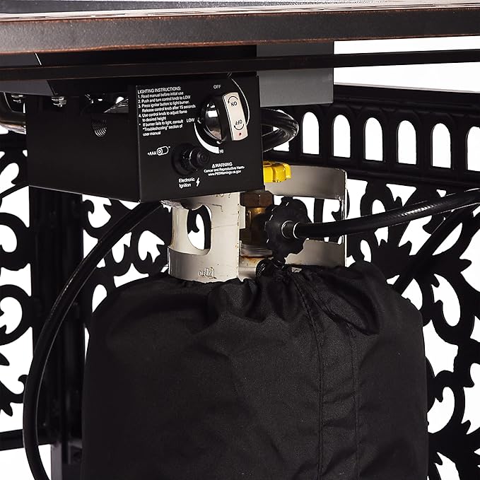 - This premium fire table burns at a maximum of 57,000 BTU