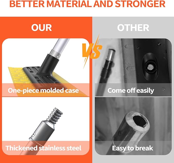 - [Integrated Handle Cover and Shovel Head] It prevents the shovel head from loosening or breaking, maintaining stability even after extended use. The 3/4โ Acme Thread Pole Tip is made of a metal alloy for durability and can safely be overtightened. The perfect angle setting of the snow rake effortlessly cleans roof valleys and hard-to-reach areas for a thorough clean.