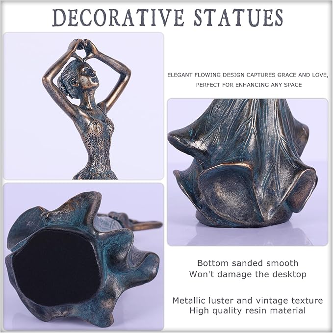 - Detailed Artistic Design: This decor statue captures the grace of a young girl in a bronze color sculpture. It serves as a stunning centerpiece or a subtle addition to your collection of bronze color figurines and hand statues for decor.