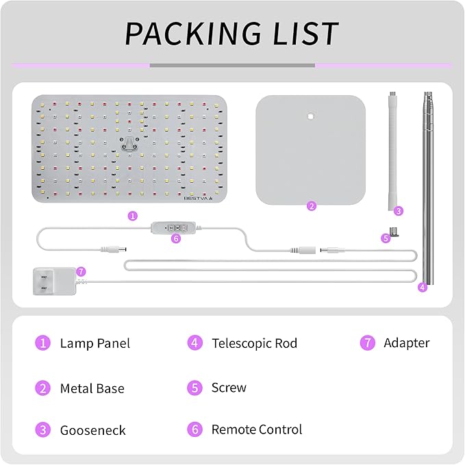 - Easy to Install & Easy to Use :Equipped with all the mounting kit, just follow the easy to install instructions to fit the base, fix the gooseneck, adjust the height and switch it on, very easy and quick! And made from ultra-thin aluminium, this plant grow light is lightweight, dissipates heat well and provides extensive light coverage, perfect for indoor use