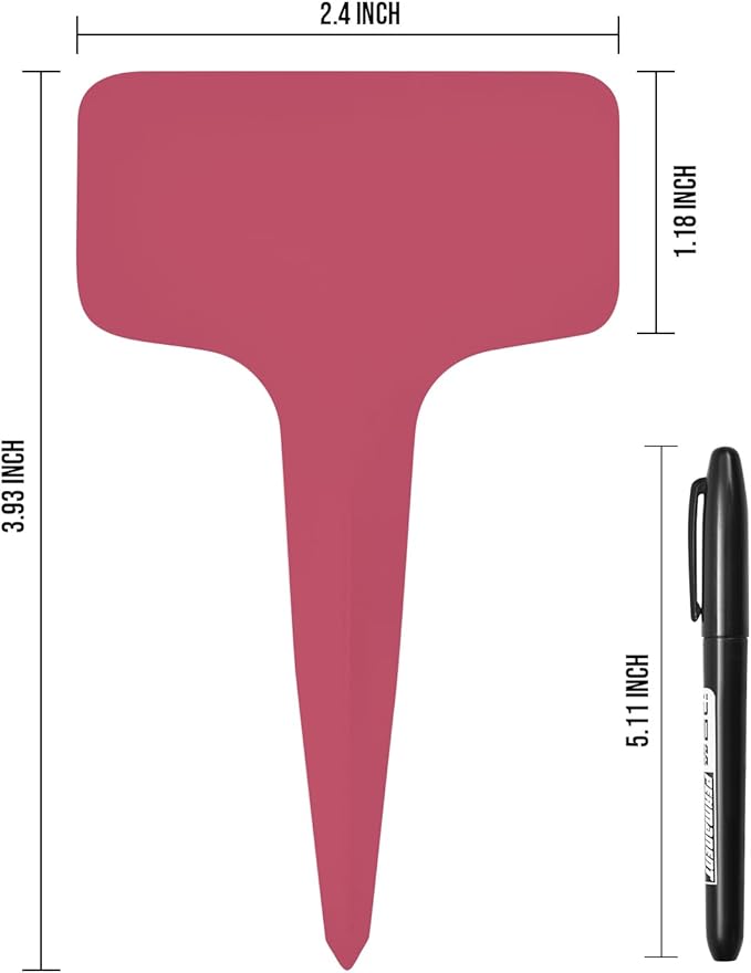 Plant Labels 200 Pcs Yuanling T-Type Plastic Garden Tags Waterproof Plant Sign Stakes Nursery Garden Makers for Seedlings Flower Vegetables Herb Potted Belt Permanet Marker Pen (Red)