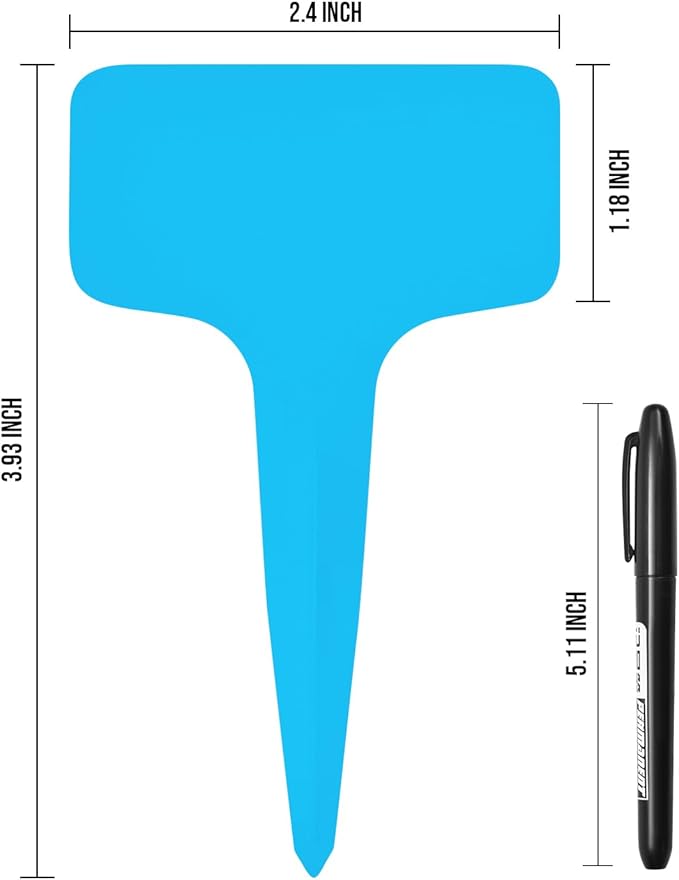 Plant Labels 200 Pcs Yuanling T-Type Plastic Garden Tags Waterproof Plant Sign Stakes Nursery Garden Makers for Seedlings Flower Vegetables Herb Potted Belt Permanet Marker Pen (Blue)