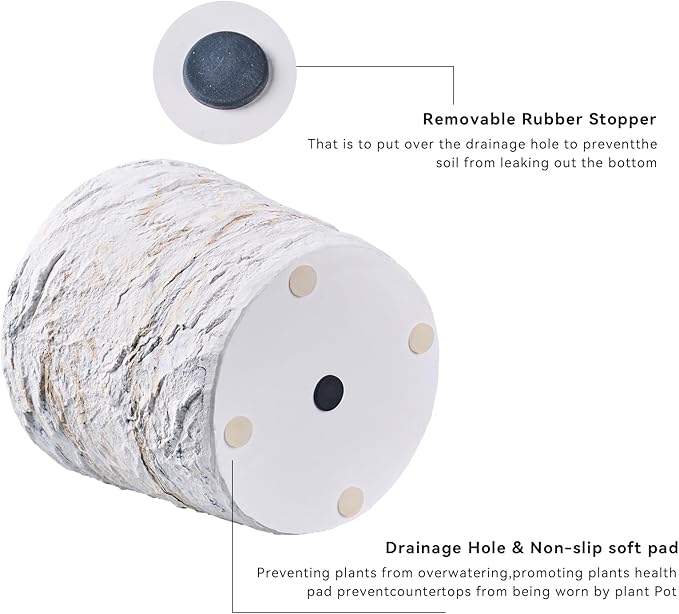 - 【Drain Hole & Rubber Stopper】There is a drain hole at the bottom of each flower pot, with a removable rubber stopper to prevent soil from overflowing. Also Ekirlin equipped with 4 Non-slip soft pad, increased flower pot stabilization
