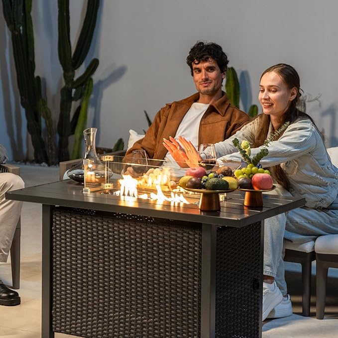 - Multifunctional 43 In Fire Table: Can be used as an gas fire pits for patio, outdoor dining table or coffee table. Enjoy the outdoor experience it brought in spring and summer, and the warmth brought by the fire pit table in autumn or winter