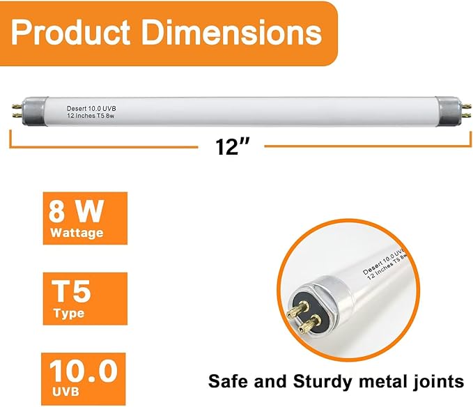 - 【T5 8W UVB 】Our T5 UVB bulb have Long lifespan of 10000 hours. For better performance, Replace the bulb every 6-9 monthes