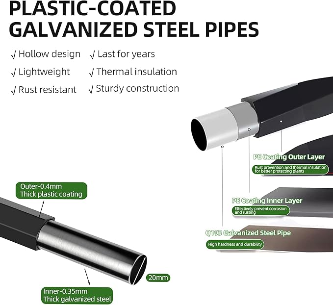 - PE-Coated Galvanized Steel - Made from PE-coated galvanized steel, this half garden arch trellis reduces surface temperatures by 41-59β compared to all-metal options, preventing plant scorching. It is also rust-resistant and offers excellent insulation, ensuring durability for many years.