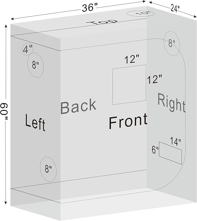 - Superior Materials and Sturdy Structure---- The grow tent is made of tear proof 600D canvas and double stitched to ensures the light blocking. Strong metal poles and solid PA corner connectors that will uphold your grow tent's frame and lock your structure securely in place. Ensure stable and heavy duty enough for durable & safety use.